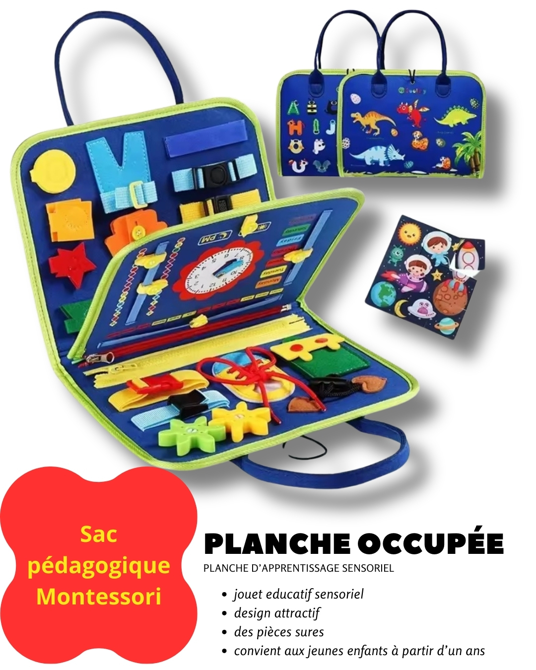Offrez à votre enfant un jeu éducatif complet inspiré de la méthode Montessori. Ce sac d’activités interactif permet aux enfants d’apprendre en jouant tout en développant leur autonomie, leur logique et leur créativité. Une manière idéale d’introduire l’apprentissage précoce sans écran.
